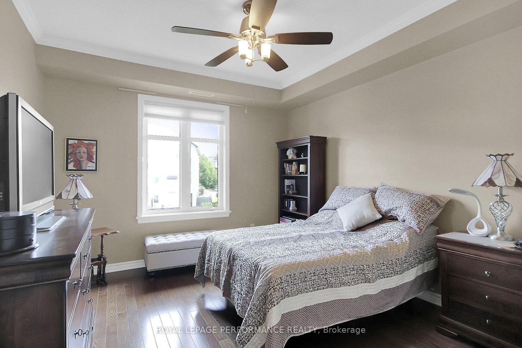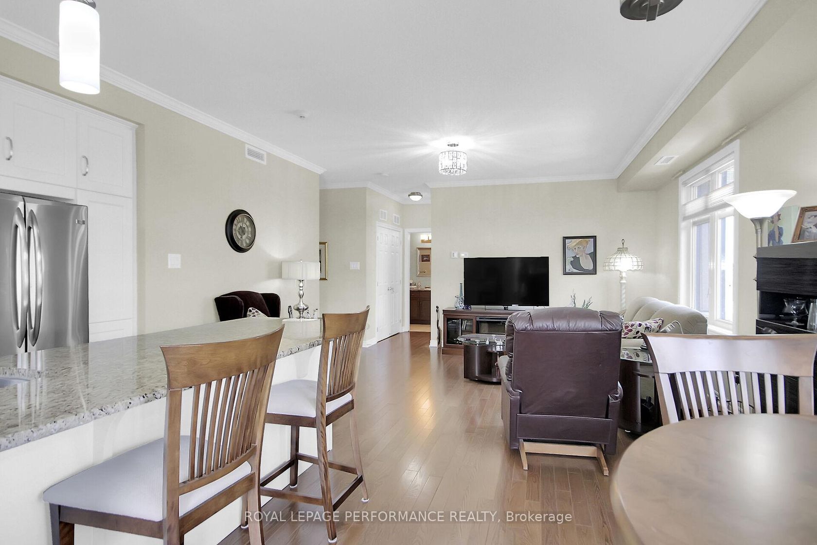 This stylish 2-bedroom + den, 2-bath condo is ideally located just steps from Kanata Centrum Shopping Centre. The bright, open layout features hardwood floors throughout, a modern kitchen, and a spacious living/dining area perfect for entertaining. The primary bedroom offers a 3-piece ensuite and double closet, while the second bedroom is generously sized with plenty of storage. Additional conveniences include in-suite laundry, underground parking, and a private storage locker.Enjoy access to the buildings clubhouse, complete with space for gatherings, a pool table, darts, and fitness equipment. With shopping, dining, transit, and every amenity at your doorstep, this top-floor condo combines comfort, convenience, and maintenance-free living in one perfect package.