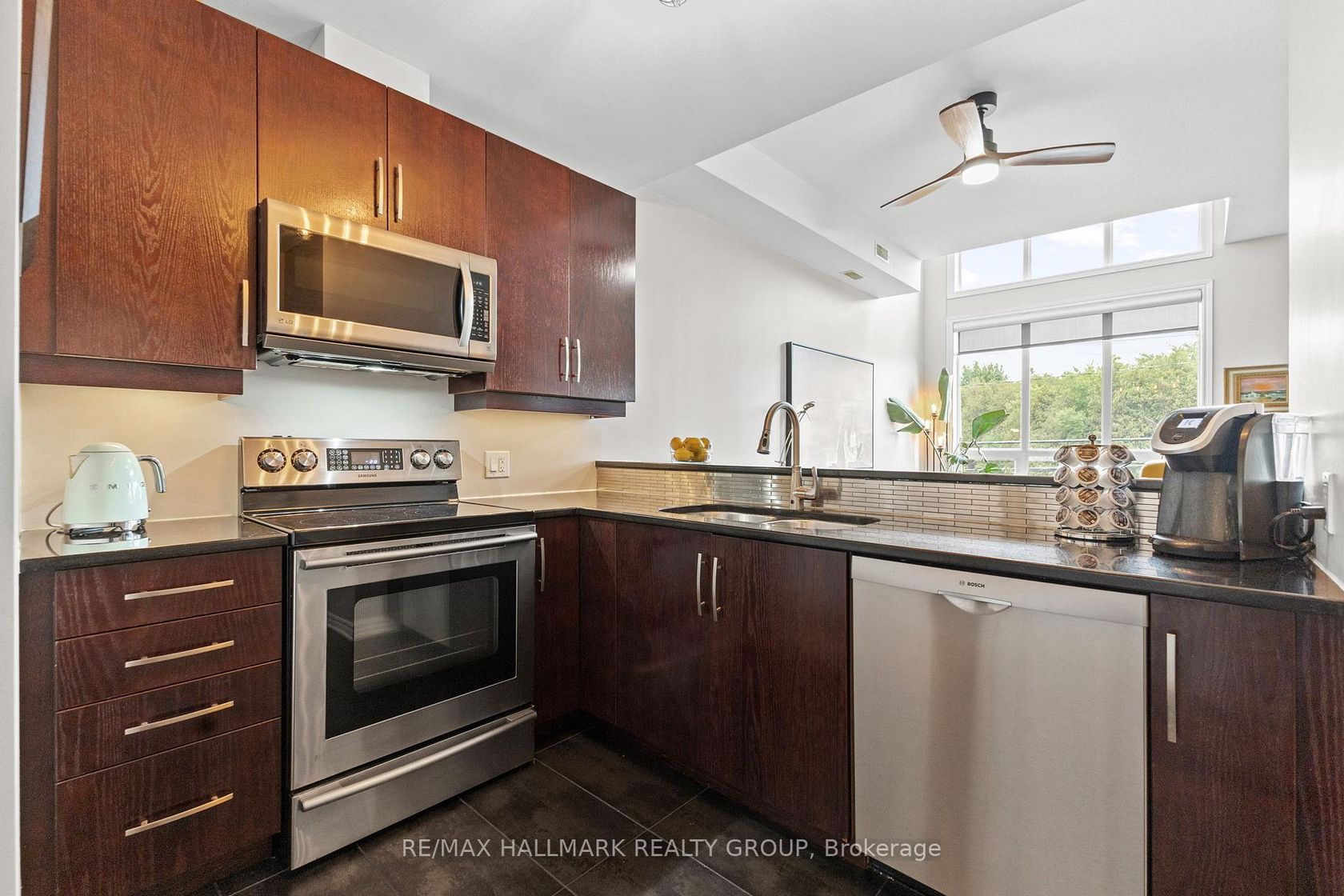 Welcome to 500 Claridge Drive, Unit #206 - stunning two-storey condo built by Tega Homes, combining modern design, thoughtful upgrades, and an unbeatable location. With over 9-foot ceilings on both levels, two bedrooms, three bathrooms, two parking spaces, and an open, light-filled layout, this home offers the perfect balance of comfort, style, and function. Step inside to a sleek tiled foyer where a convenient powder room sits to your left, ideal for guests. Just a few steps forward, the kitchen opens up to your left, featuring all stainless steel appliances, plenty of storage, and your in-suite laundry tucked neatly inside. Matching tiled floors throughout the foyer, kitchen, and bathrooms add a sense of cohesion and elevate the sleek, modern design. The kitchens countertop bar flows naturally into the living area, offering space for up to four bar stools, making it a perfect spot for casual dining or entertaining friends. Beyond the kitchen, the home opens into a bright, airy living and dining space with tall ceilings and floor-to-ceiling windows that flood the area with natural light. From here, step out onto your private balcony with no front neighbours, where you can enjoy your morning coffee, unwind after a long day, or simply soak in the treetop surroundings. You'll notice hardwood flooring flows throughout. The second level leads to a spacious primary bedroom with a three-piece ensuite and a generous walk-in closet, large enough to accommodate a small desk or vanity. The second bedroom is equally inviting, featuring a beautiful skylight window that fills the space with warmth and brightness. Recent upgrades include a new furnace and A/C (2024) and fresh paint throughout (2023), making this home truly move-in ready. Perfectly situated in Barrhaven's Claridge community, you're just steps from shops, restaurants, parks, schools, and transit, with quick access to major roadways for an easy commute. 24 hour irrevocable on all offers.