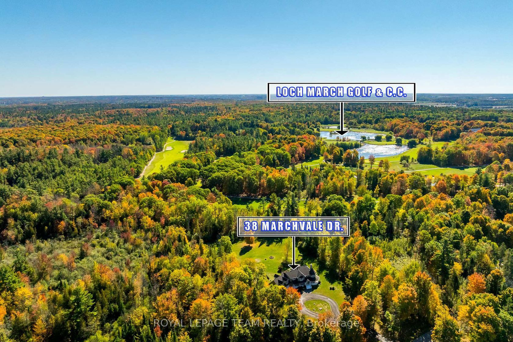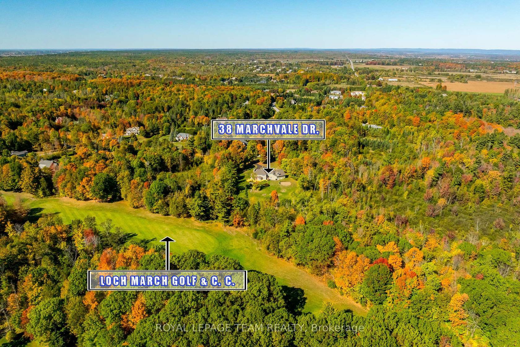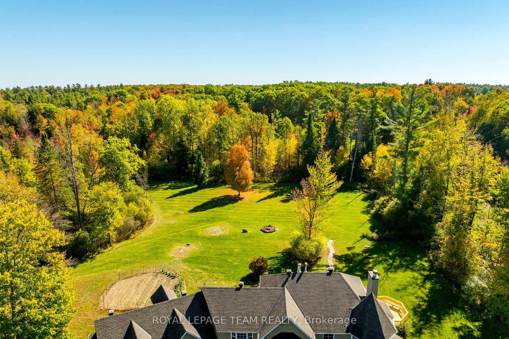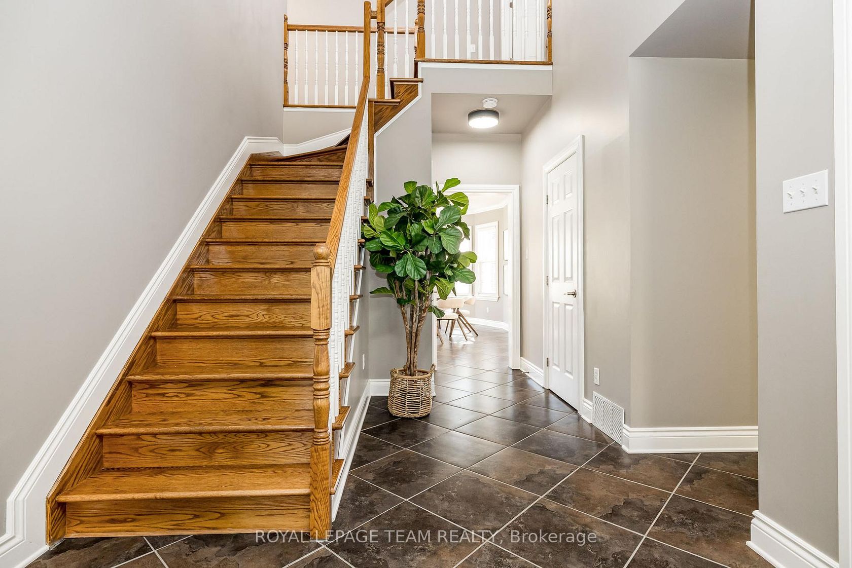 Welcome to an extraordinary retreat in prestigious Marchvale Estates, where over 4,100 sq. ft. of luxury living awaits on more than 3 acres of impeccably landscaped, private grounds. This custom-built residence combines timeless elegance with thoughtful family design, offering 5 bedrooms, 4 bathrooms, and a layout that perfectly balances everyday comfort with grand entertaining. Set back from the road along a picturesque tree-lined circular driveway, the home makes a striking first impression. A 3-car garage, dual front entrances, and dual staircases add both sophistication and multi generational living potential. Inside, natural light pours through abundant bay windows, showcasing sweeping views of the grounds. Three patio walkouts seamlessly connect indoor living spaces to the serene outdoors. The home boasts soaring 9ft ceilings, rich hardwood and ceramic floors, and a chefs kitchen. Formal and casual living areas offer flexibility for gatherings of any size, while a main-floor bedroom or office provides privacy and versatility. Upstairs, the lavish primary suite is a private sanctuary, complete with a spa-inspired 5-piece ensuite. A second private suite with its own ensuite and walk-in closet includes an adjoining bonus room; ideal for a playroom, media room, dressing roon, or teen retreat. Two additional bedrooms complete the family-friendly upper level. The fully finished lower level expands the living space beautifully with new flooring, direct access to the garage, ample storage, a bar and endless possibilities for a home gym, rec room, or guest accommodations. A geothermal system ensures year-round comfort with impressive energy efficiency. Outdoors, an irrigation system ensures lush, low-maintenance grounds, perfect for play and relaxation alike. Ideally located just 5 mins from Kanatas high-tech hub, top schools, golf & everyday amenities. With quick access to Highway 417, this estate offers the ultimate blend of privacy and convenience.