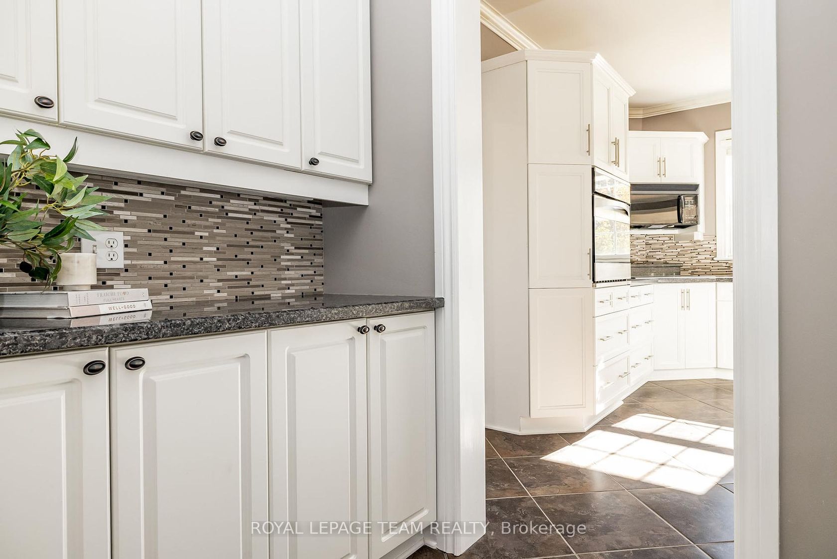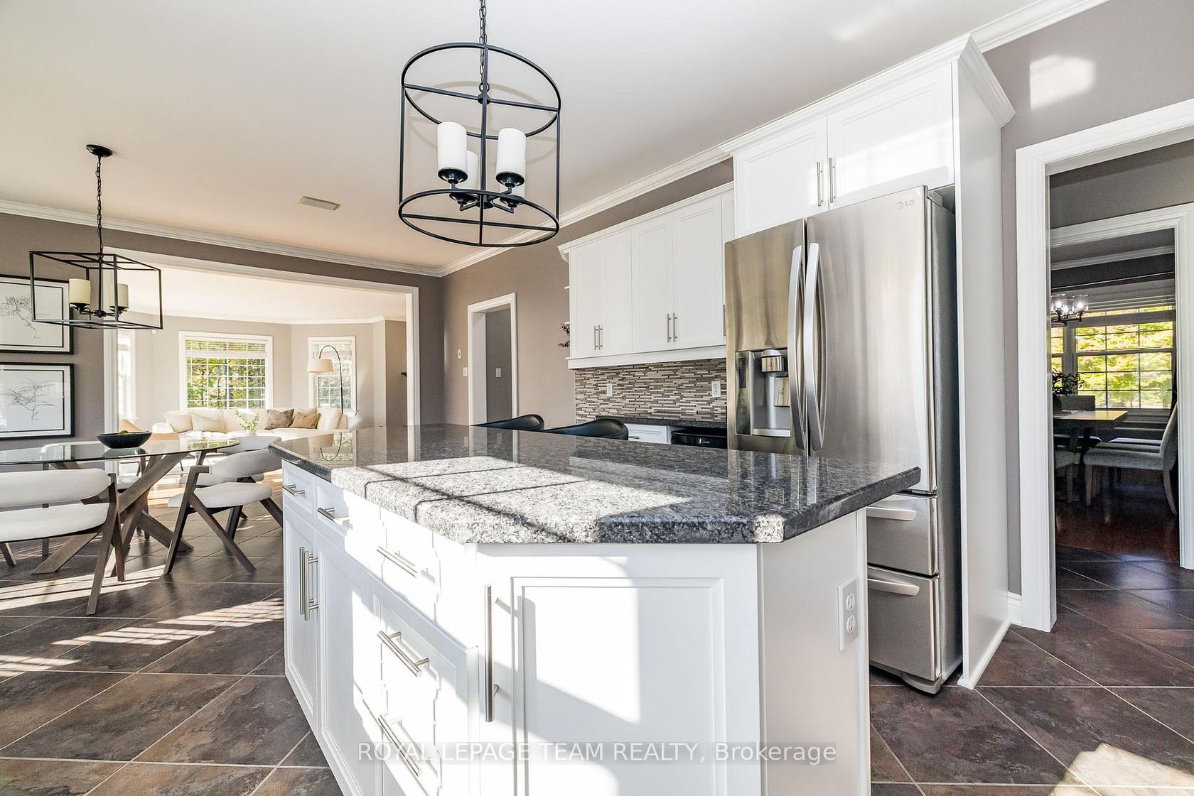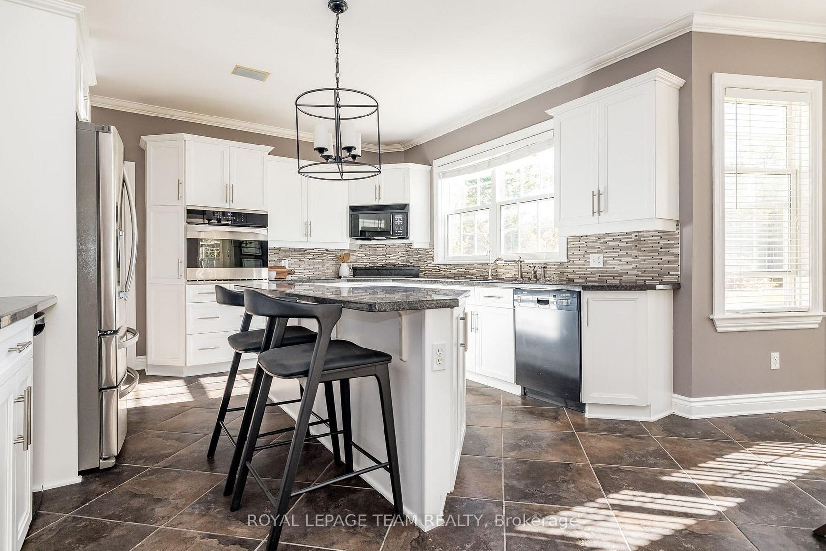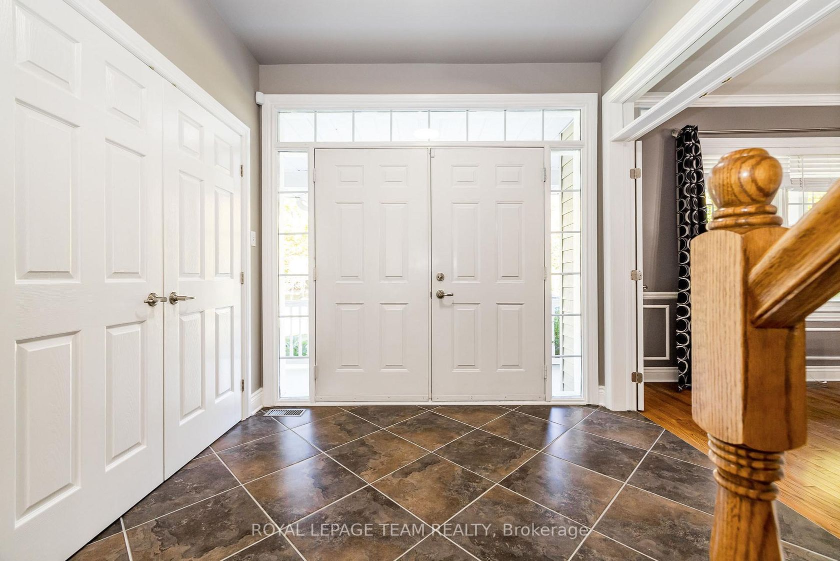 Welcome to an extraordinary retreat in prestigious Marchvale Estates, where over 4,100 sq. ft. of luxury living awaits on more than 3 acres of impeccably landscaped, private grounds. This custom-built residence combines timeless elegance with thoughtful family design, offering 5 bedrooms, 4 bathrooms, and a layout that perfectly balances everyday comfort with grand entertaining. Set back from the road along a picturesque tree-lined circular driveway, the home makes a striking first impression. A 3-car garage, dual front entrances, and dual staircases add both sophistication and multi generational living potential. Inside, natural light pours through abundant bay windows, showcasing sweeping views of the grounds. Three patio walkouts seamlessly connect indoor living spaces to the serene outdoors. The home boasts soaring 9ft ceilings, rich hardwood and ceramic floors, and a chefs kitchen. Formal and casual living areas offer flexibility for gatherings of any size, while a main-floor bedroom or office provides privacy and versatility. Upstairs, the lavish primary suite is a private sanctuary, complete with a spa-inspired 5-piece ensuite. A second private suite with its own ensuite and walk-in closet includes an adjoining bonus room; ideal for a playroom, media room, dressing roon, or teen retreat. Two additional bedrooms complete the family-friendly upper level. The fully finished lower level expands the living space beautifully with new flooring, direct access to the garage, ample storage, a bar and endless possibilities for a home gym, rec room, or guest accommodations. A geothermal system ensures year-round comfort with impressive energy efficiency. Outdoors, an irrigation system ensures lush, low-maintenance grounds, perfect for play and relaxation alike. Ideally located just 5 mins from Kanatas high-tech hub, top schools, golf & everyday amenities. With quick access to Highway 417, this estate offers the ultimate blend of privacy and convenience.