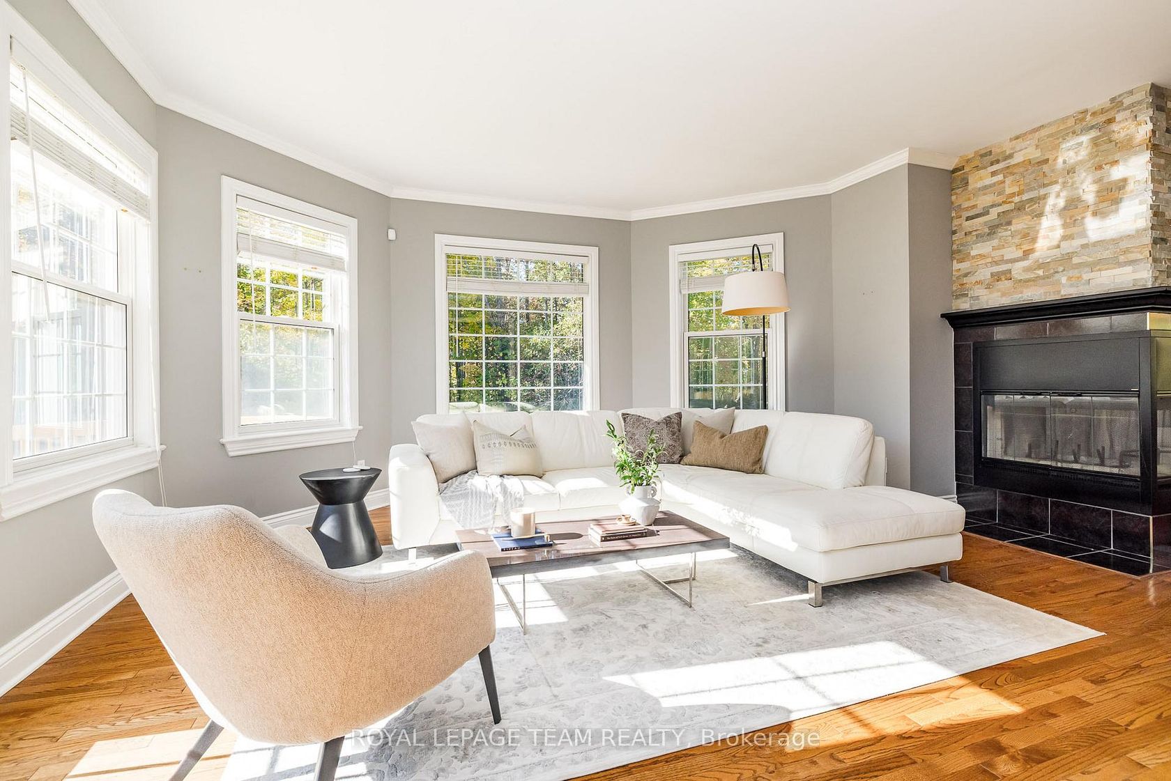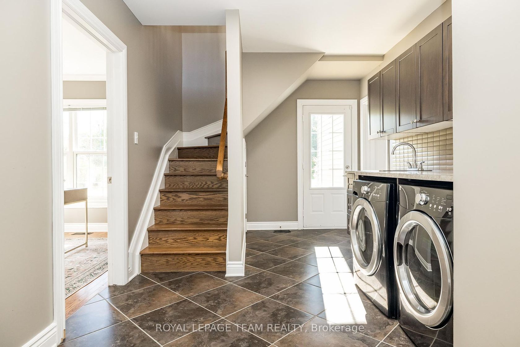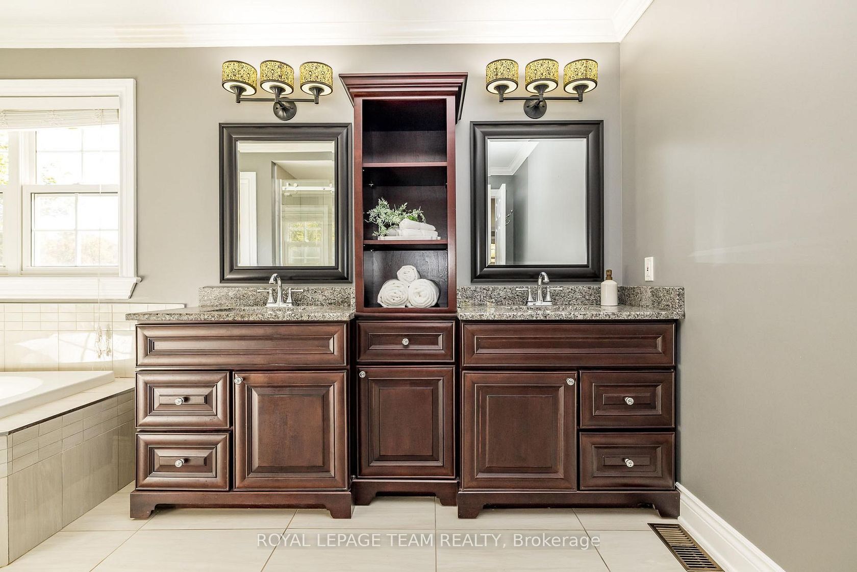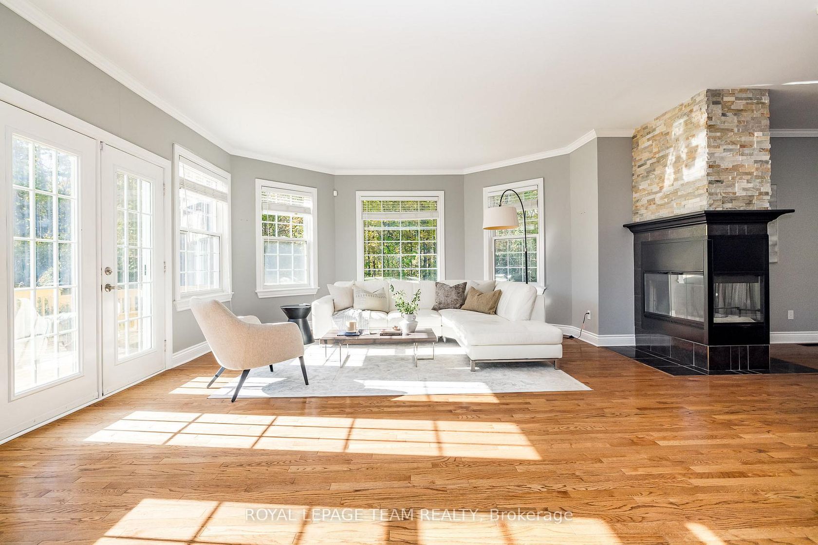 Welcome to an extraordinary retreat in prestigious Marchvale Estates, where over 4,100 sq. ft. of luxury living awaits on more than 3 acres of impeccably landscaped, private grounds. This custom-built residence combines timeless elegance with thoughtful family design, offering 5 bedrooms, 4 bathrooms, and a layout that perfectly balances everyday comfort with grand entertaining. Set back from the road along a picturesque tree-lined circular driveway, the home makes a striking first impression. A 3-car garage, dual front entrances, and dual staircases add both sophistication and multi generational living potential. Inside, natural light pours through abundant bay windows, showcasing sweeping views of the grounds. Three patio walkouts seamlessly connect indoor living spaces to the serene outdoors. The home boasts soaring 9ft ceilings, rich hardwood and ceramic floors, and a chefs kitchen. Formal and casual living areas offer flexibility for gatherings of any size, while a main-floor bedroom or office provides privacy and versatility. Upstairs, the lavish primary suite is a private sanctuary, complete with a spa-inspired 5-piece ensuite. A second private suite with its own ensuite and walk-in closet includes an adjoining bonus room; ideal for a playroom, media room, dressing roon, or teen retreat. Two additional bedrooms complete the family-friendly upper level. The fully finished lower level expands the living space beautifully with new flooring, direct access to the garage, ample storage, a bar and endless possibilities for a home gym, rec room, or guest accommodations. A geothermal system ensures year-round comfort with impressive energy efficiency. Outdoors, an irrigation system ensures lush, low-maintenance grounds, perfect for play and relaxation alike. Ideally located just 5 mins from Kanatas high-tech hub, top schools, golf & everyday amenities. With quick access to Highway 417, this estate offers the ultimate blend of privacy and convenience.