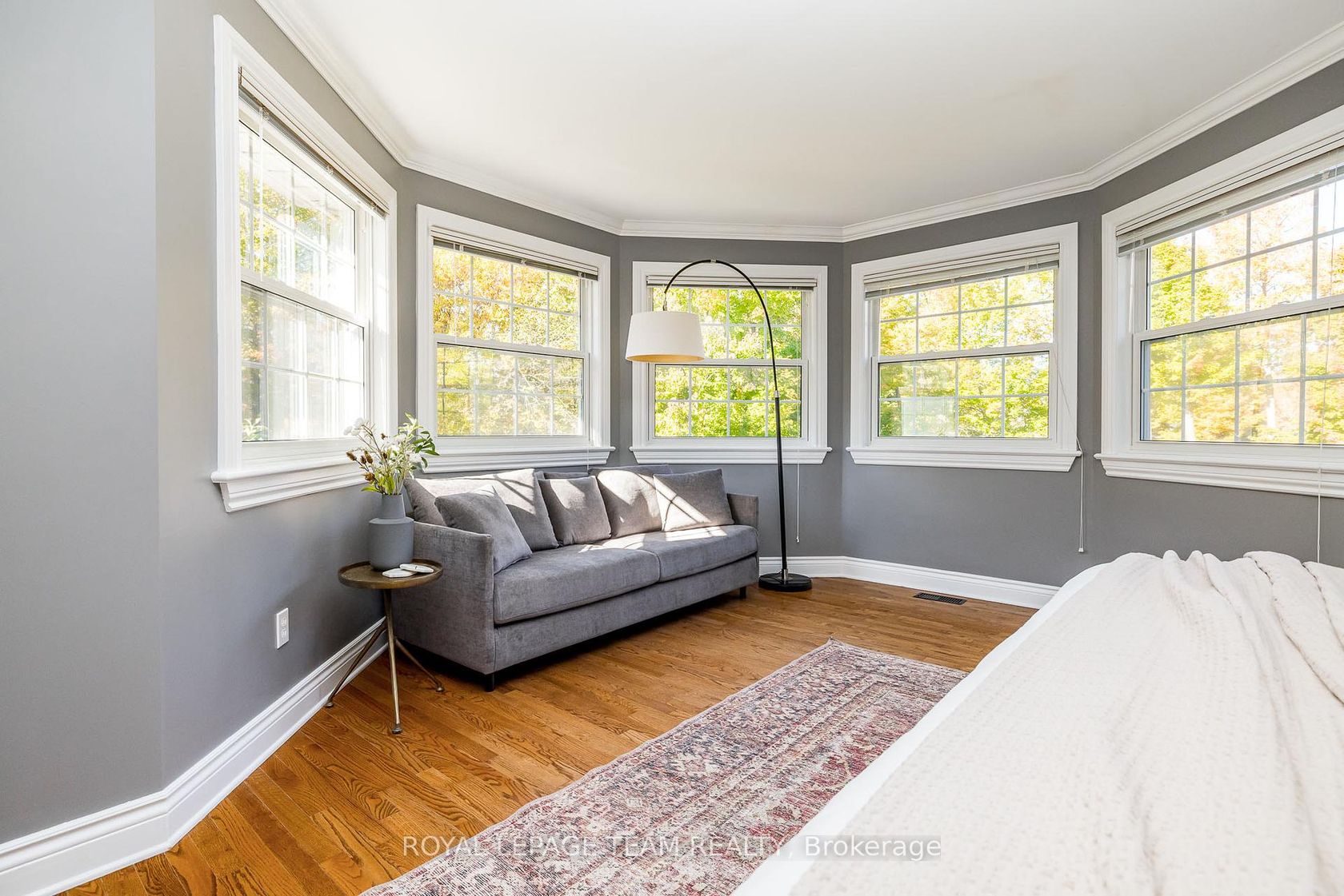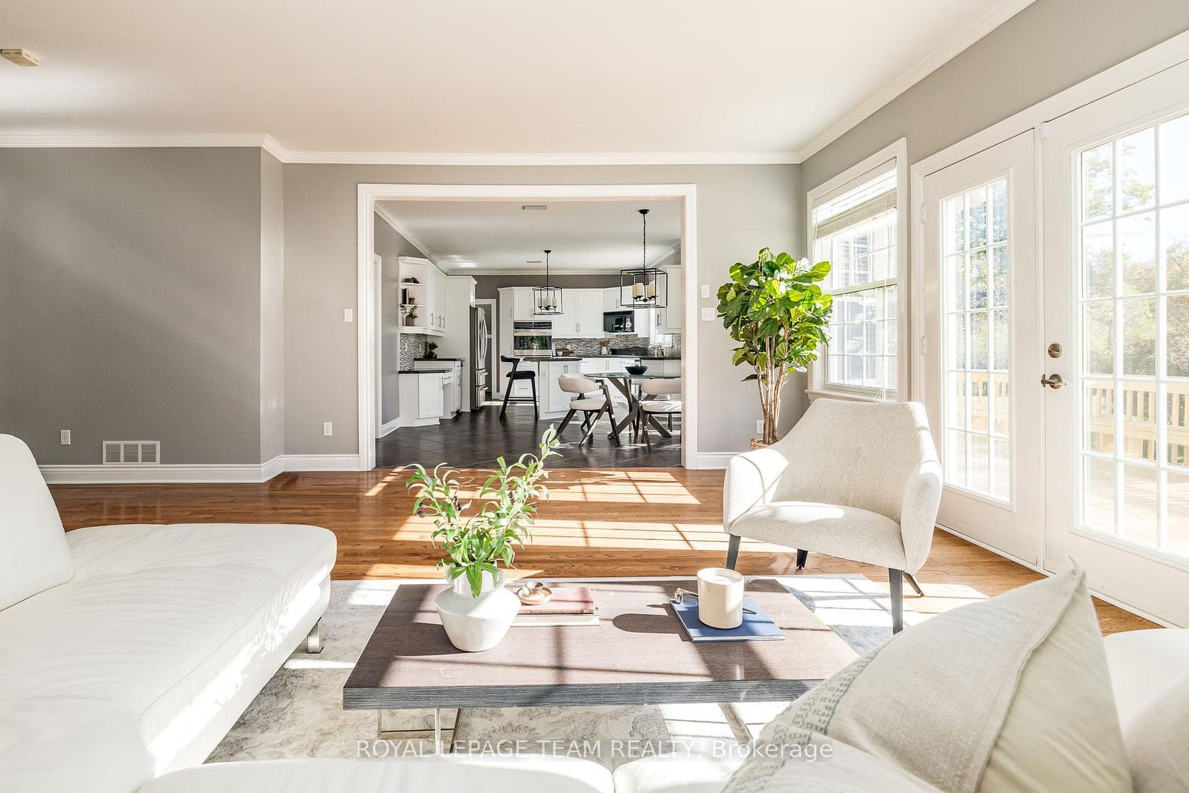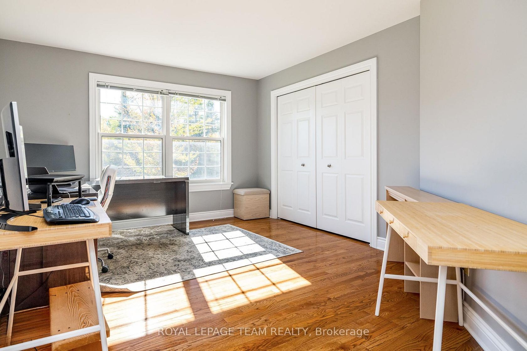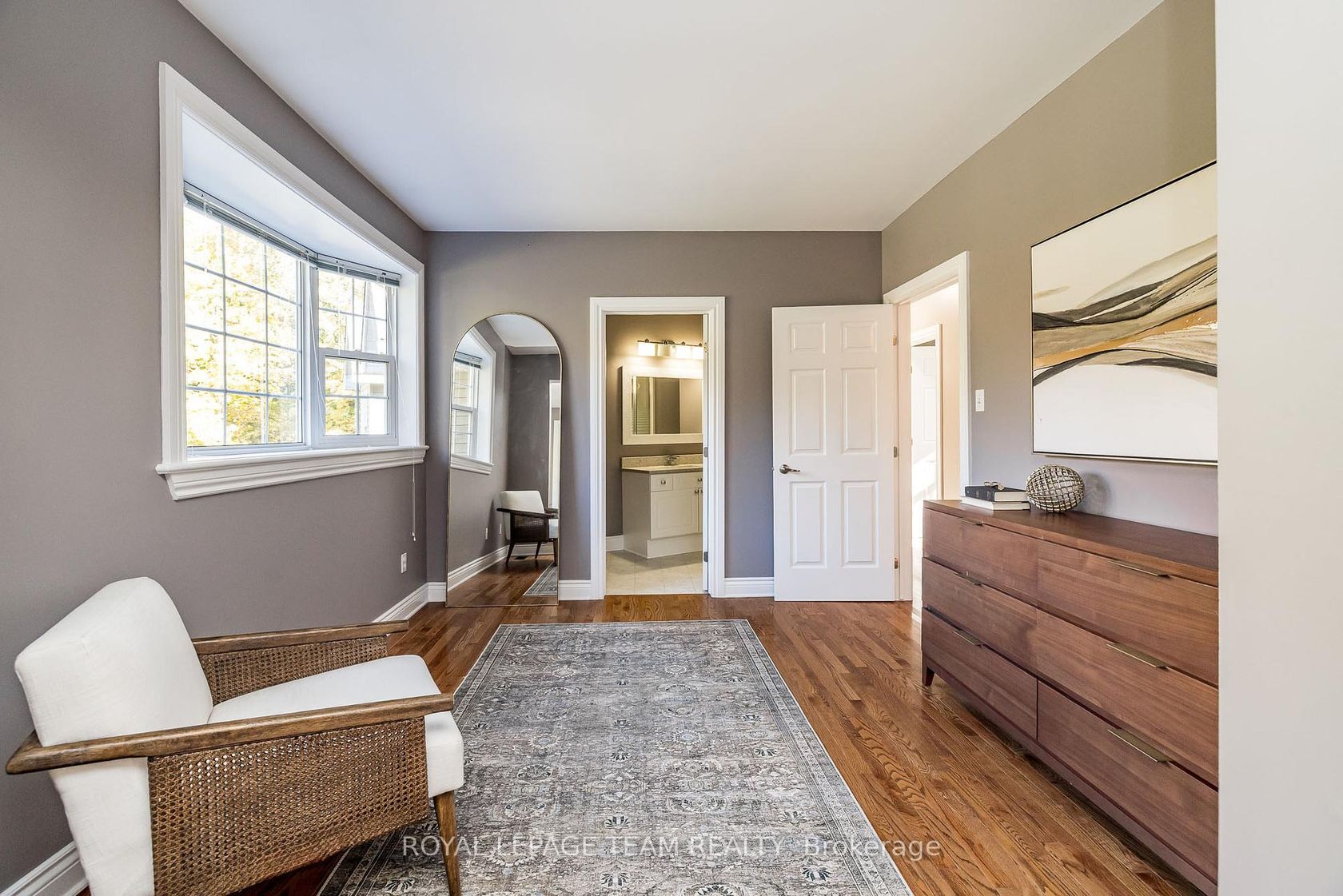 Welcome to an extraordinary retreat in prestigious Marchvale Estates, where over 4,100 sq. ft. of luxury living awaits on more than 3 acres of impeccably landscaped, private grounds. This custom-built residence combines timeless elegance with thoughtful family design, offering 5 bedrooms, 4 bathrooms, and a layout that perfectly balances everyday comfort with grand entertaining. Set back from the road along a picturesque tree-lined circular driveway, the home makes a striking first impression. A 3-car garage, dual front entrances, and dual staircases add both sophistication and multi generational living potential. Inside, natural light pours through abundant bay windows, showcasing sweeping views of the grounds. Three patio walkouts seamlessly connect indoor living spaces to the serene outdoors. The home boasts soaring 9ft ceilings, rich hardwood and ceramic floors, and a chefs kitchen. Formal and casual living areas offer flexibility for gatherings of any size, while a main-floor bedroom or office provides privacy and versatility. Upstairs, the lavish primary suite is a private sanctuary, complete with a spa-inspired 5-piece ensuite. A second private suite with its own ensuite and walk-in closet includes an adjoining bonus room; ideal for a playroom, media room, dressing roon, or teen retreat. Two additional bedrooms complete the family-friendly upper level. The fully finished lower level expands the living space beautifully with new flooring, direct access to the garage, ample storage, a bar and endless possibilities for a home gym, rec room, or guest accommodations. A geothermal system ensures year-round comfort with impressive energy efficiency. Outdoors, an irrigation system ensures lush, low-maintenance grounds, perfect for play and relaxation alike. Ideally located just 5 mins from Kanatas high-tech hub, top schools, golf & everyday amenities. With quick access to Highway 417, this estate offers the ultimate blend of privacy and convenience.